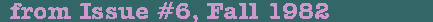Hatred for conformism and phoniness, along with a renewed respect for dream and fantasy, were primary values for the rebels of fifteen years ago. Ana Kellia Ramares' story, "Greys, " expresses these values powerfully in an OfficeLand context. In this issue's Tales of Toil, "Buy 'Em and Sell 'Em at Solem," the private relations of a notorious San Francisco PR firm, Solem & Associates, are held up to deserved ridicule. And "Them," which could be called a "Tale of Toilsome Leisure," penetrates beyond the hoopla surrounding the recent US Festival to reveal it as just another pseudo-event with computerized trappings.
