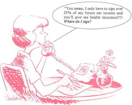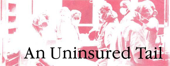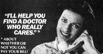 she asks. I tell her. "Do you have insurance?" "No." She asks a few more questions, then it's over and
