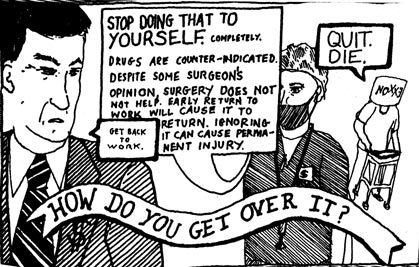 I was wrong. I woke up the first Thursday of my fourth month with a pain that spanned the distance between my top vertebrae, aptly called the atlas, and my left armpit. Suddenly, I was a cripple. I couldn't raise my left arm above the elbow. The weight of a coat or the strap of a purse was intolerable. Sleep was only possible with a heating pad and several pillows to hoist my upper left quadrant like a cast. I immediately made appointments with the physical therapist and apologized to my boss that I would be leaving early on Friday for a massage. Although the pain in my shoulder felt as if it would never go away,